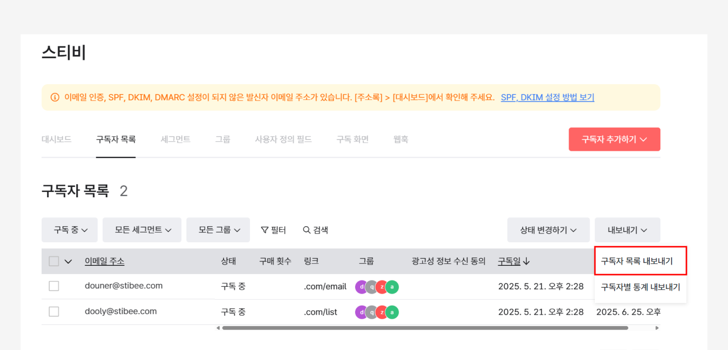 구독자 목록을 파일로 내보내는 방법에 대해서 알아봅니다.